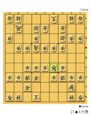 Gote try to prevent Sente's Bishop exchange by retreating Bishop from 6d to 4b position to deal with Sente's Waki System
