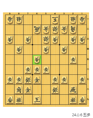 This shows gote (white) R-6b and sitting silver opening against Yagura opening