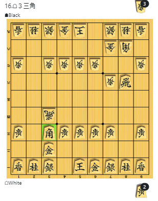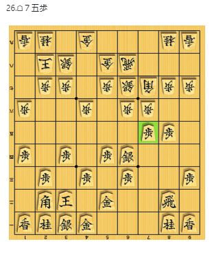 This is the origin of current side picker's main stream where Gote will play bishop at 3c when Sente picks up the side pawn. Gote also uses nakazumai (中住まい=lit.translation "living in the middle" King position.