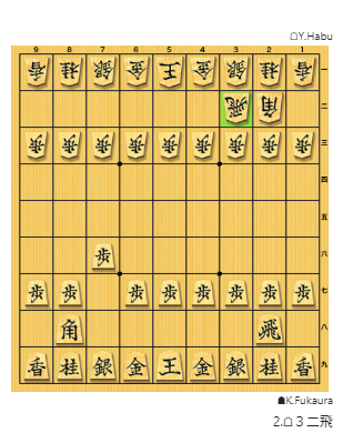 Fukaura vs. Habu 2008/07 - R3b on the second move (2手目3二飛車)